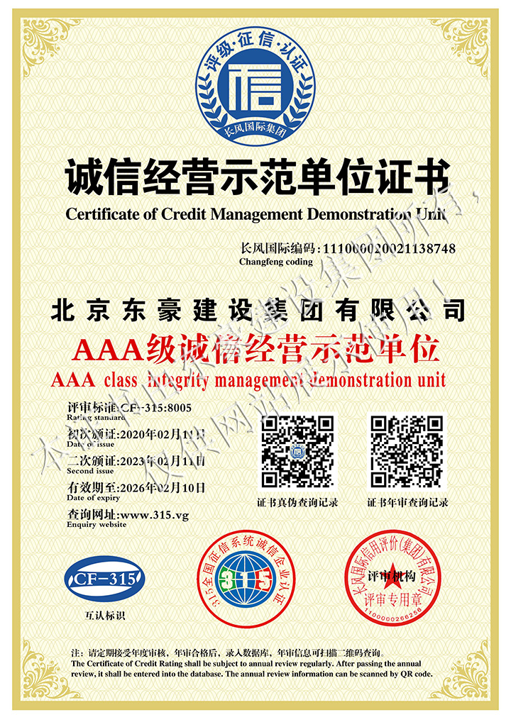 AAA级诚信经营示范单位