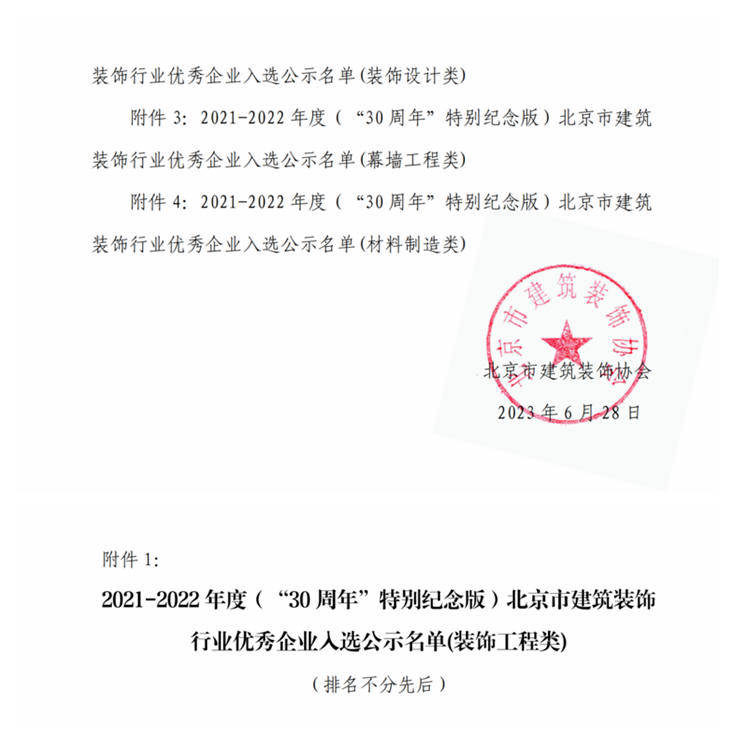 香港六和盒宝典大全入选2021-2022 年度(“30 周年”特别纪念版) 北京市建筑装饰行业优秀…