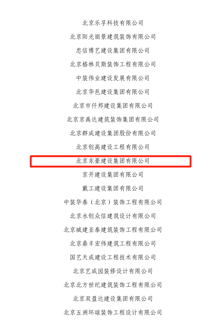 北京市建筑装饰行业优秀企业名单