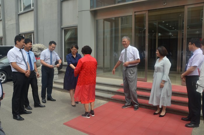 集团董事长陈作海,副董事长王爱霞,总经理张继东,余良中、都威辰、开发副总陈长虹,生产副总刘震、商务副总陈晨,经营副总贾平在大门口迎接贵宾的到来。