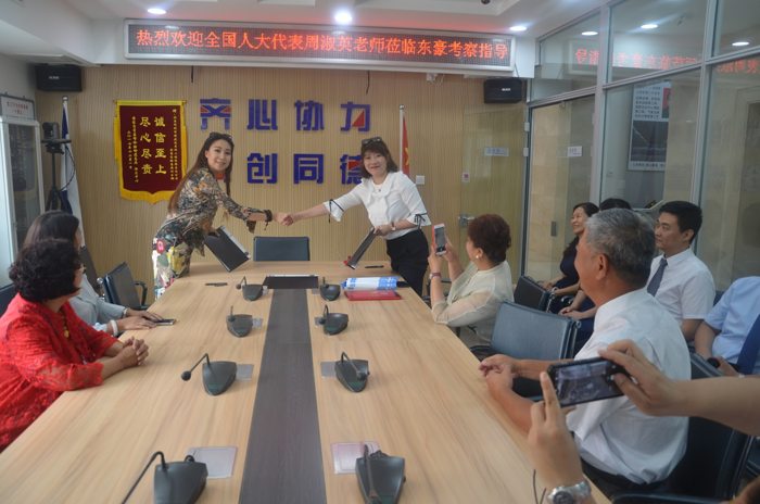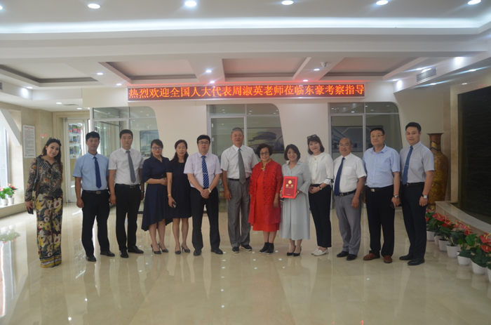随后周淑英老师参观了解企业的发展历程、经营管理、技术创新、制度建设、办公环境等方面的情况。集团董事长陈作海作了详细汇报,在汇报到公司热心公益事业、承担社会责任,为贫困地区修桥补路,资助生活困难职工等情况时,周淑英老师表示:作为一个企业,不但要把公司经营好,更应该担负起社会责任,回馈社会,从这个角度来说,东豪集团不仅仅是做到了,而且做得很好!
