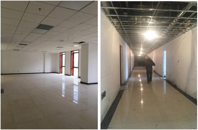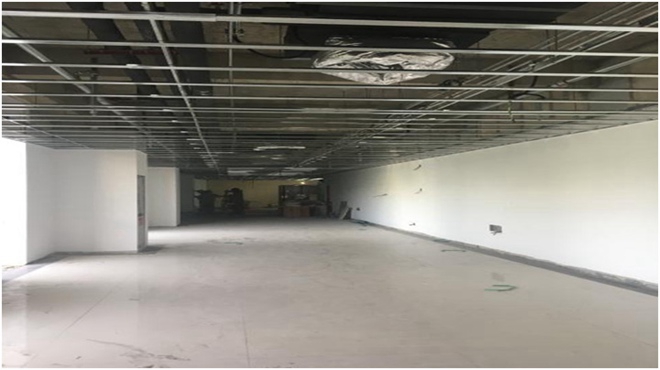 现室内进度如下:室内一二三层电缆及电线基本敷设完成,涮锡并头完成;室内一二三层电缆压线完成80%;室内一二三层空调水,风管均安装完成;室内一二三层主副龙骨安装完成65%;室内房间及公共区域位置地面砖铺装完成40%;一二三层卫生间防水施工完成;屋面自粘防水卷材施工完成;室内一二三层墙面基层处理,腻子完成一道;干挂石材钢架焊接完成;三层报告厅木制作基层制作完成80%。