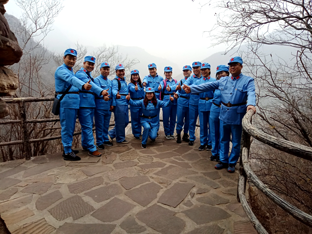 在红旗渠,我们体会当年修渠时的场景,1500公里的红旗渠是由一块块太行石垒砌而成,把石头搬运至渠岸施工处就是一个巨大的工程量。这些看似简单的劳动,却不仅需要力量,还需要智慧、团结和勇气。今天我们用脚步来丈量红旗渠的长度,用心来感悟肩上的责任,深深的体验当年那个物质极度匮乏、精神信仰至上的时代精神!