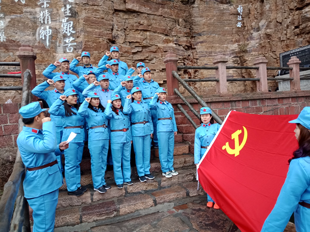 青年洞前,香港六和盒宝典大全的党员干部、优秀员工面对党旗,誓言铮铮,高声朗念入党誓词,进行一次灵魂的净化和精神的洗礼。