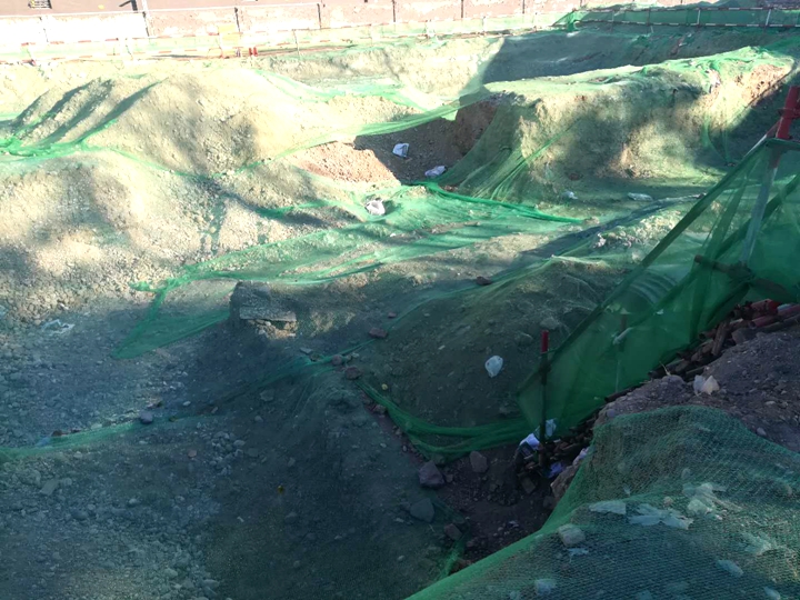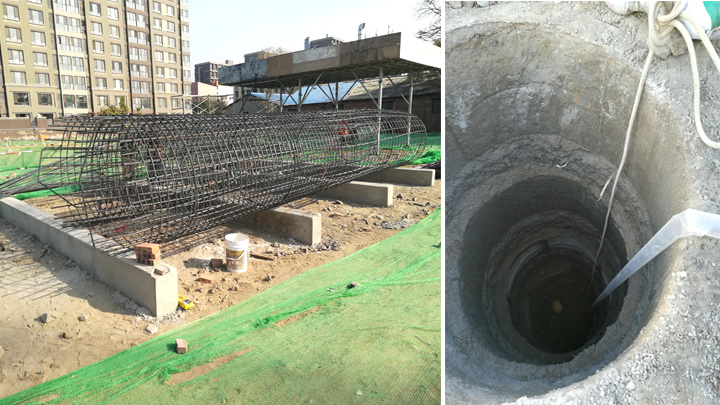 截止目前,场地平整已经完成、弃土已经外运,所有土方覆盖到位,基础开挖已经到负3米,土方外运一半,3个人工挖孔桩孔及护壁混凝土已经完成,预制钢筋笼已经完成(只等安装钢筋笼及打混凝土),基坑防护已经到位,配电室、钢筋加工区、厕所、垃圾池临时设施已经完成,西侧大门及道路已经开通,场地平整、垃圾已经外运、覆盖到位,洗车池基础基本完成。