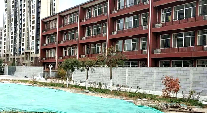 1).新建综合楼北侧围挡墙砌筑完成,东西两侧大门安装完成;