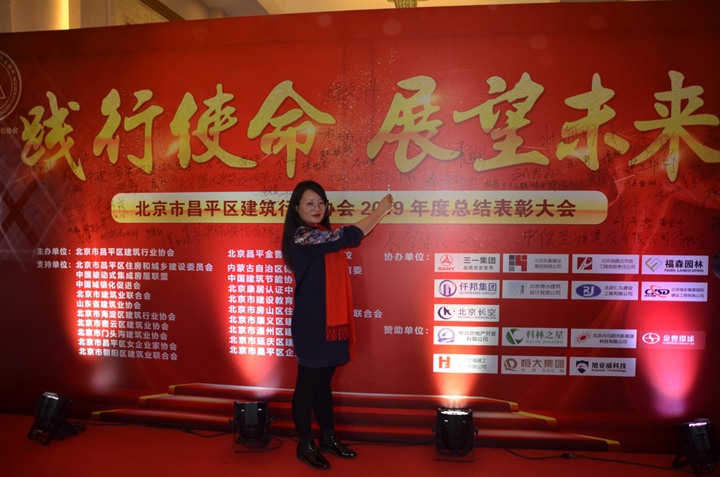 15:00主持人宣布:昌平区建筑行业协会“践行使命 展望未来”2019年昌平区建筑行业总结表彰大会正式开始。首先有昌平区建筑业协会秘书长甄景文女士上台致开幕词: