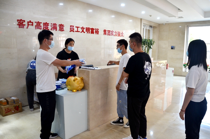 集团公关人力行政部、工会工作人员将口罩等疫情防护用品,发放到全体职工手中,引导职工开展疫情防护工作。同时,加大疫情防控教育宣讲力度,加强干部职工健康知识教育和医疗科普,宣传普及新型冠状病毒感染的肺炎疫情的防治知识,增强干部职工自我防范意识。还采取了一系列措施,比如每天都安排专人为 员工测量体温,统计监测员工的健康情况,并且及时上报,有效保障全体员工的安全、健康。