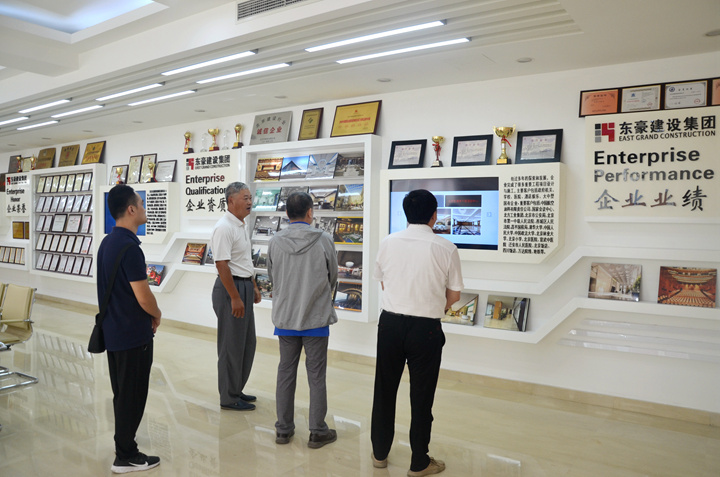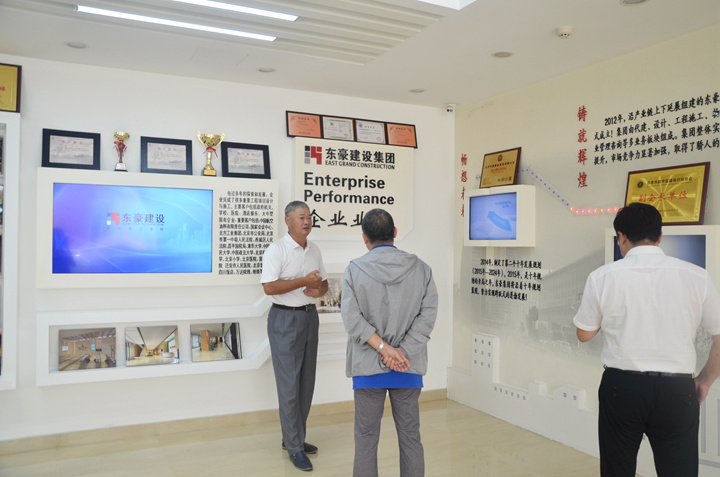 东豪集团董事长对赵巨鹏先生的到来表示热烈欢迎,并陪同参观了东豪集团整体办公环境、多媒体展厅等,详细介绍了东豪集团发展历程、生产经营、工程业绩、科技创新、人才培养等各方面情况。对于东豪集团的发展经营、规范管理等各方面,赵巨鹏先生表示肯定和赞赏,提出了宝贵的意见和建议。随后双方领导在三楼会议室进行了亲切友好的座谈。