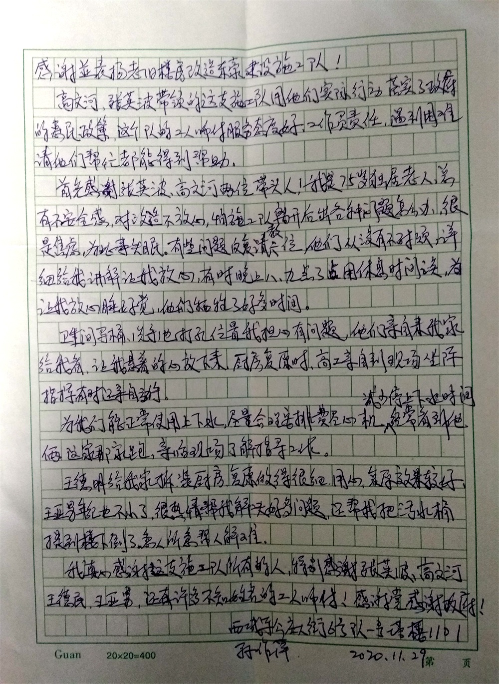 居民的表扬既是对老旧小区改造工作的极大肯定,也是对工程建设者的巨大鞭策。在今后的工作中,项目部将继续履行职责和使命,将改造工作做实、做细,以更加饱满的热情投入到现场施工中,保质保量完成后续改造工作。