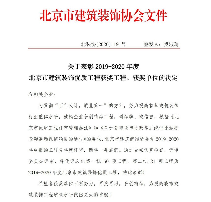 近日,北京建筑装饰协会公布了2019-2020年度北京市建筑装饰优质工程的获奖评选结果,香港六和盒宝典大全承建的上海烟草集团北京卷烟厂后勤保障设施布局调整项目室内装饰工程,荣获2019-2020年度(第一批)北京市建筑装饰优质工程。