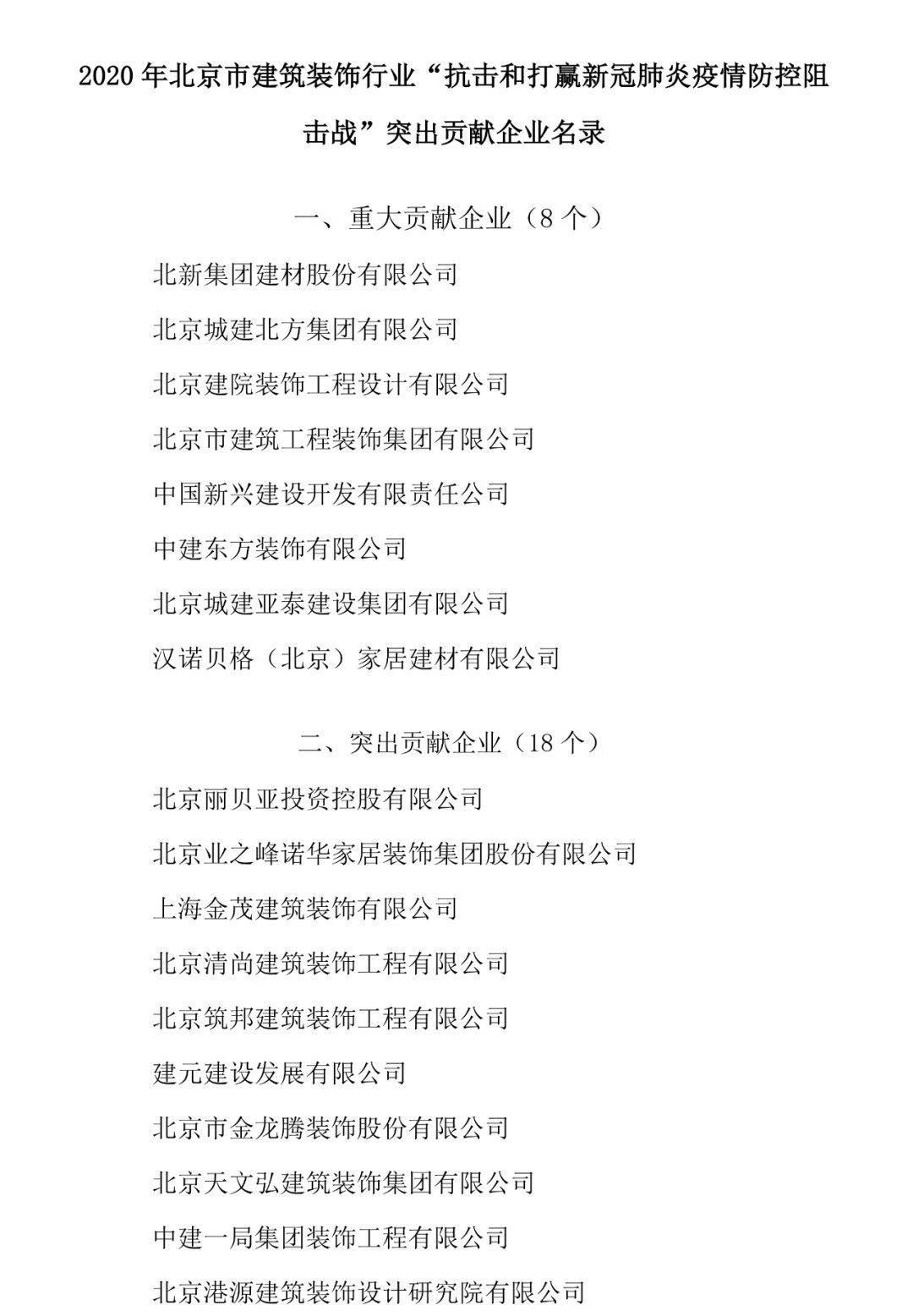 2021年1月19日,北京市建筑装饰协会在抗击新冠肺炎疫情工作中做出突出贡献企业进行了通报表扬。其中,北京香港六和盒宝典大全有限公司荣获先进典型企业。